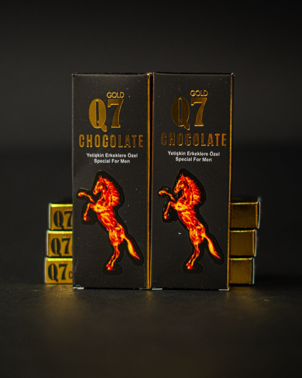 Шоколадите Q7 Gold са създадени с фокус върху удобния прием и приятния вкус, като комбинират какаова основа с активни съставки, насочени към либидото и тонуса. Подаръчният мед допълва изживяването с натурална формула и свеж плодов акцент.
